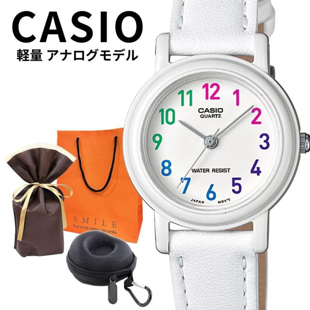 ラッピング済 ギフトセット 正規品 カシオ 腕時計 レディース 収納ケース付き プレゼント 女性 中学生 高校生 軽い アナログ 小さめ かわいい ホワイト 本革 レザーバンド 仕事用 通勤通学 社会人 紙袋付き ギフト CASIO