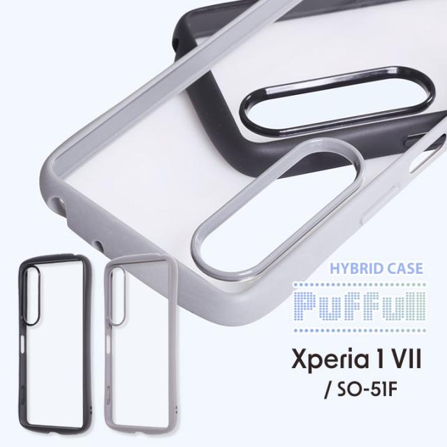 Xperia1VII SO-51F Puffull 耐衝撃 バンパー ハイブリッドケース ブラック グレー メール便送料無料
