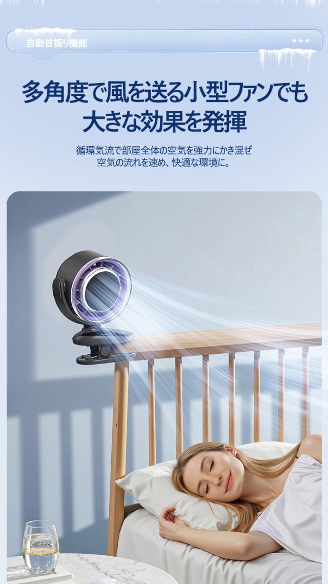 - 子どものベッドに取り付けました。 普段から真っ暗にせずに寝るので扇風機にLedランプ付きということで購入しました。 すごく静か!というわけではないですが、しっかりとした風量もあり、コンパクトなので良か...