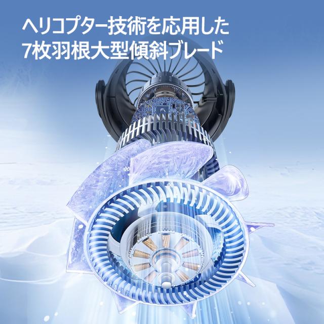 180°調整可能で、静かな風を提供。高性能DCモーターで騒音を抑制。