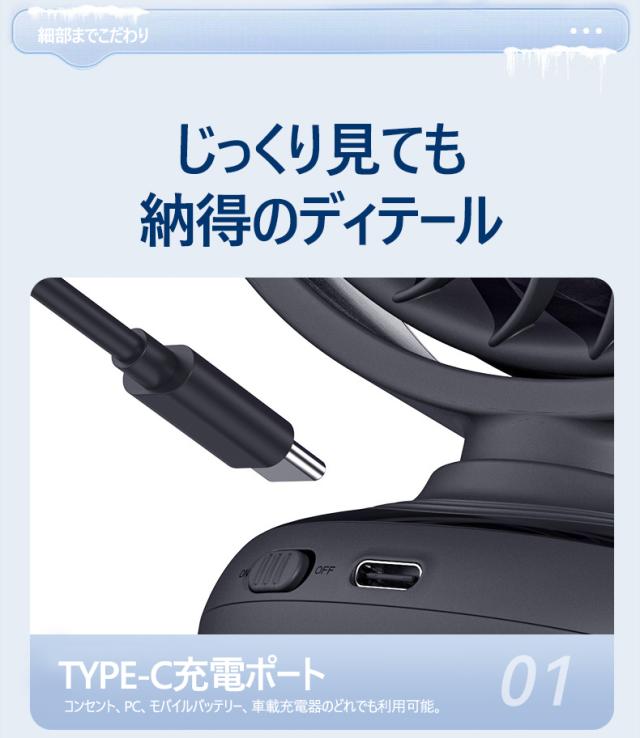 - キャンプ用に購入しました。キャンプ場では小型で使いやすいですが、小型の為羽根が小さいので風が弱く感じられましたが止めると暑く感じまた動かしていました。電池と違って充電式なので電池を気にせず使えました。...