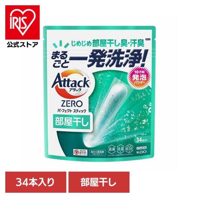 花王 アタック 洗剤 アタックZEROSTICK部屋干し 34本入り KAO 花王 アタック 洗剤 洗濯 液体洗剤 粉洗剤 アタックゼロ サンシャインアクアの香り