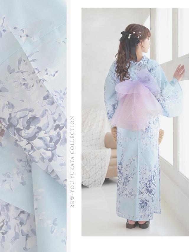 キャバ浴衣 Ryuyu 水色 小花柄 大人可愛い 和モダン レトロ 浴衣 セット レディース 浴衣レディース レディース浴衣