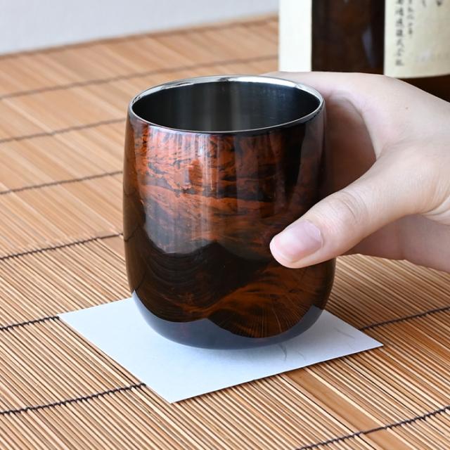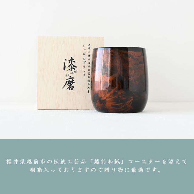 漆磨カップ 漆流し 黒 ダルマ ロックカップ( 二重構造 ) SCW-D501 タンブラー カップ ウチキ 山中塗 白檀 漆磨(シーマ) 焼酎カップ お湯割り ステンレスタンブラー おしゃれ 燕三条 日本製 越前和紙 プレゼント 男性 高級 ギフト 退職祝 父の日 敬老の日 還暦 古希 喜寿