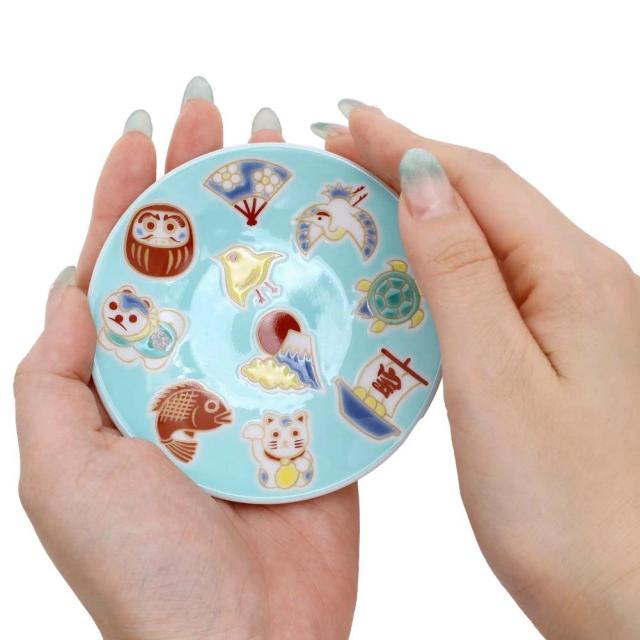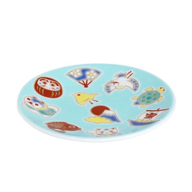 吉祥/KISSYO 日本製 九谷焼 久谷五彩 陶器 陶磁器 磁気 お皿/皿/小皿/縁起小皿/豆皿 食器 和食器 9.5cm えんぎもの 華やか 鮮やか クリックポスト便対応