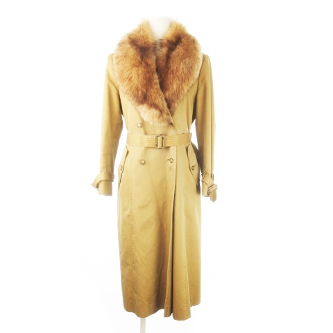 【中古】クロードレマ Claude Lema トレンチコート ロング丈 ブルーフォックスファーカラー ライナー付 13 ベージュ