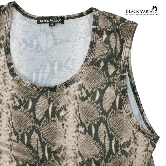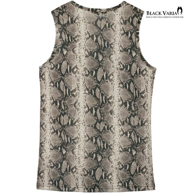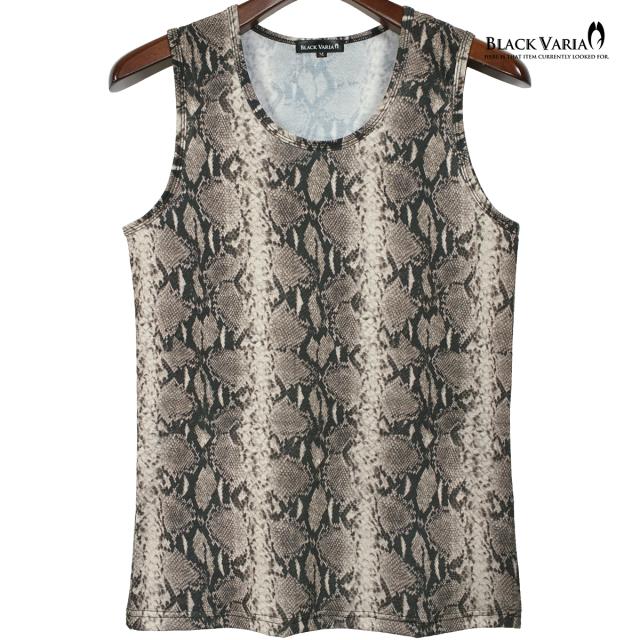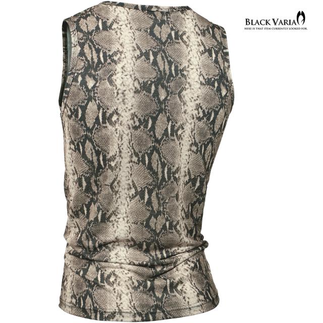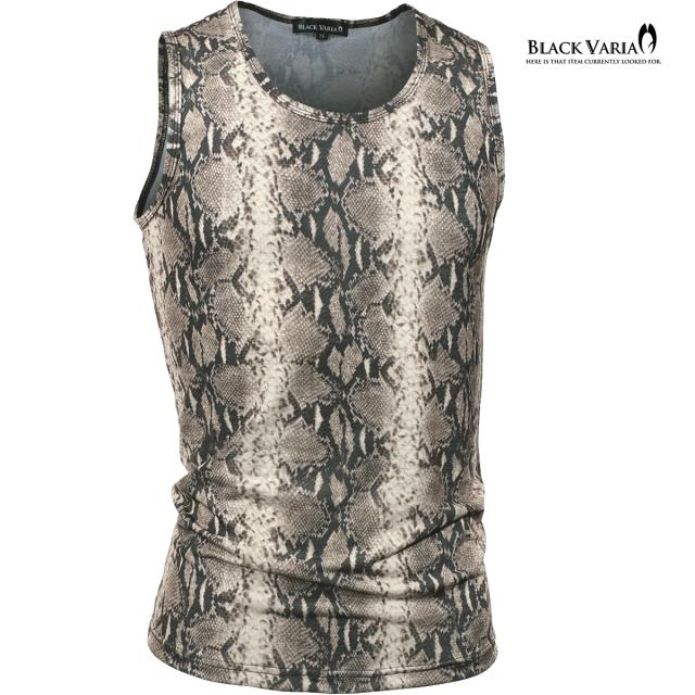 メール便可/1枚まで タンクトップ パイソン柄 ヘビ メンズ 日本製 ストレッチ 細身 タンク スリム ファッション(ブラウン茶) 252303