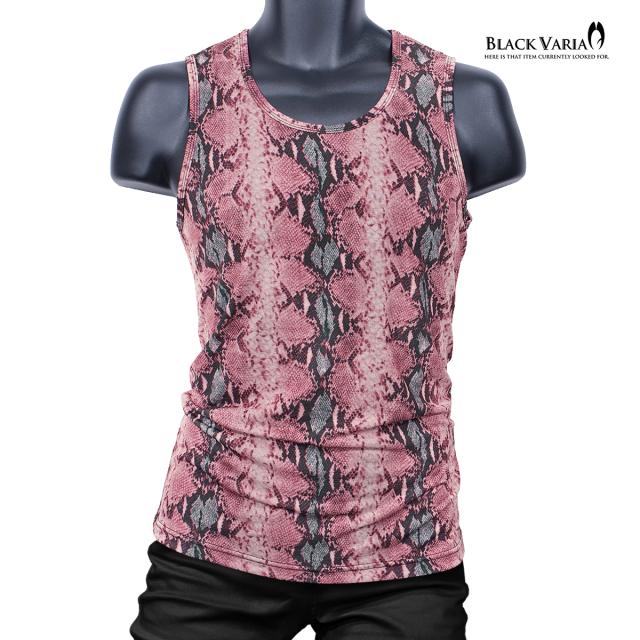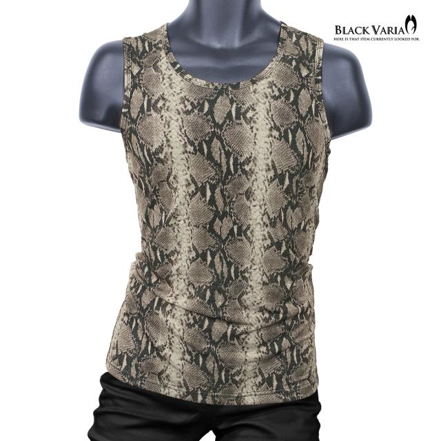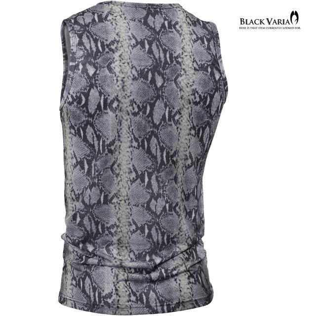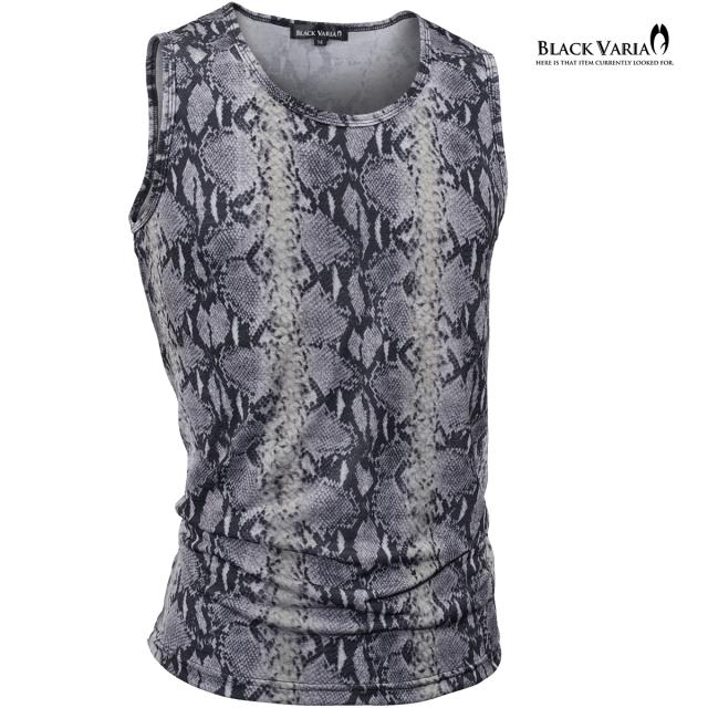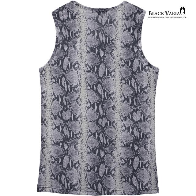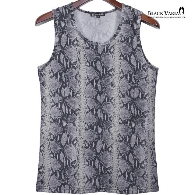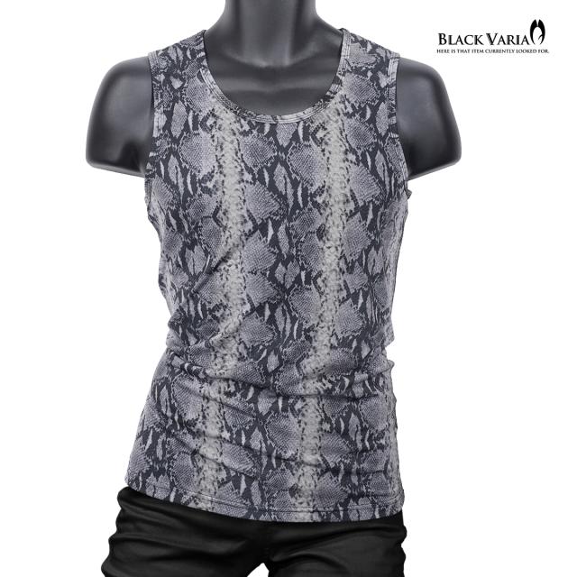 メール便可/1枚まで タンクトップ パイソン柄 ヘビ メンズ 日本製 ストレッチ 細身 タンク スリム ファッション(グレー灰) 252303