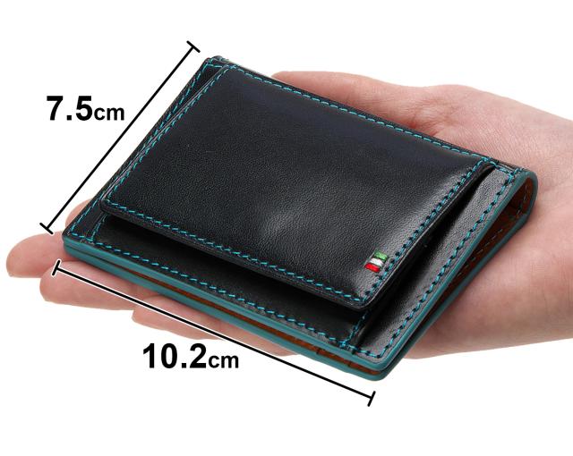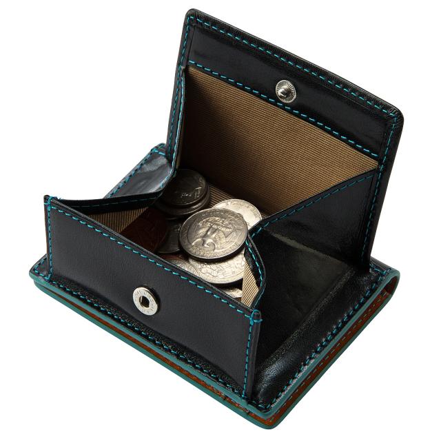 ●ミニサイズながら、カードポケット(6個)、ボックス型コインケース、折りたためば紙幣も収納できるオープンポケット(2個)をしっかりと備えています。