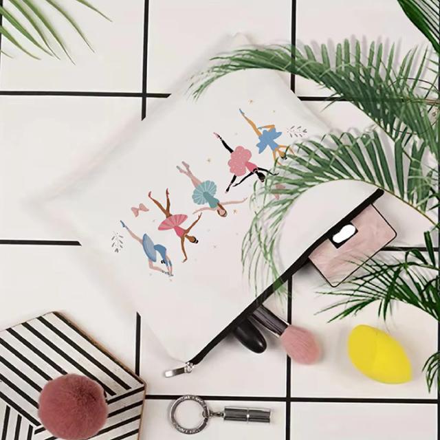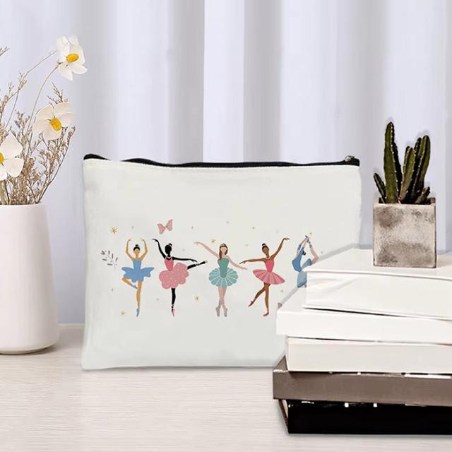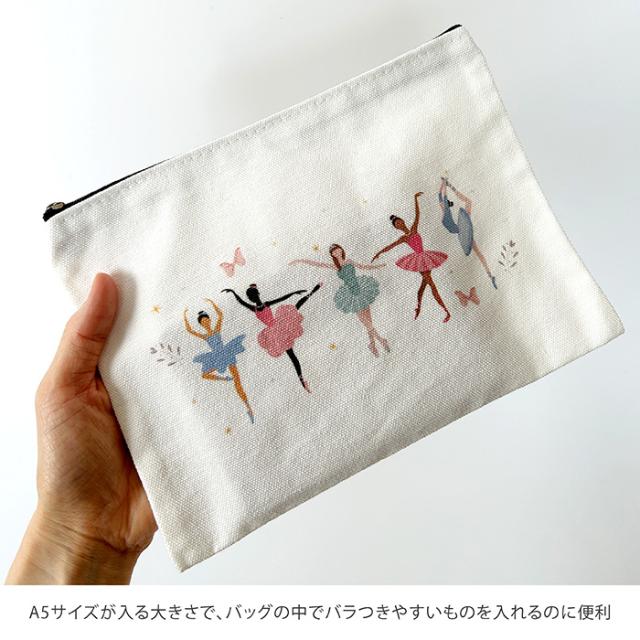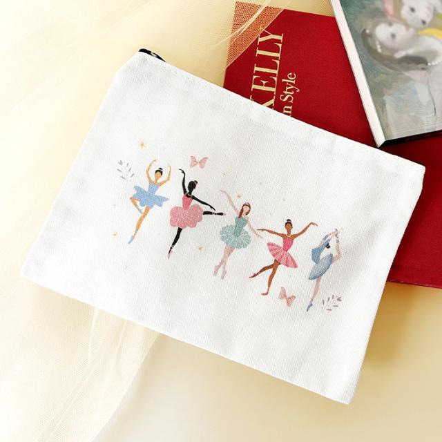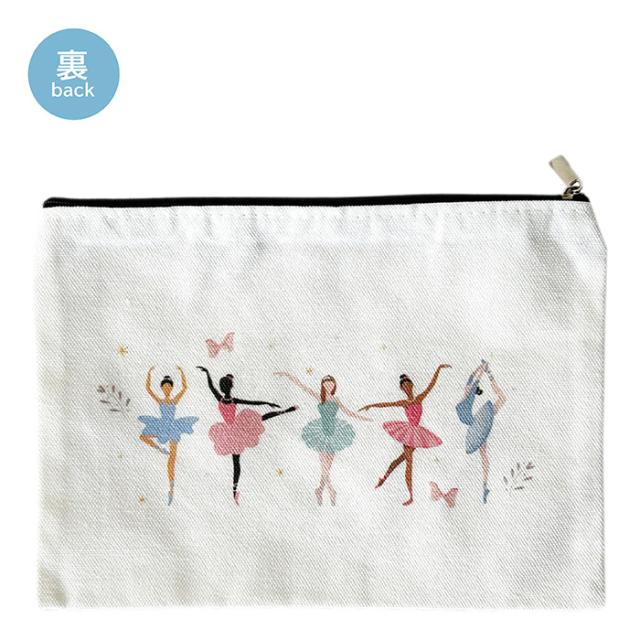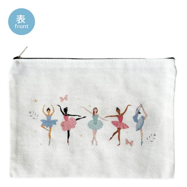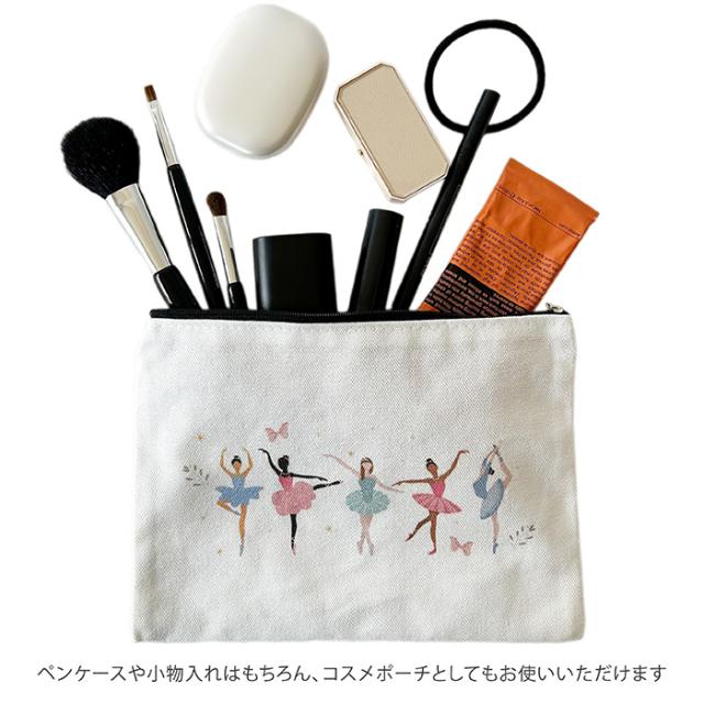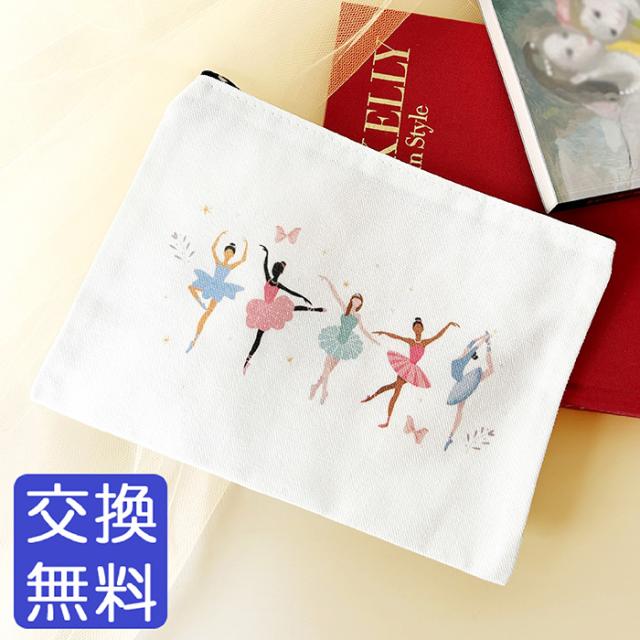 さまざまなバレリーナがプリンセスのようで可愛い、キャンバス生地のポーチ♪ペンケースや小物入れに!かわいいイラストはこどもからおとなまでご利用いただけます