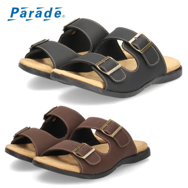 コンフォートサンダル メンズ 靴 2本ベルト 歩きやすい サンダル 合皮 カジュアル シンプル ブラック ダークブラウン パレード 56101 Parade