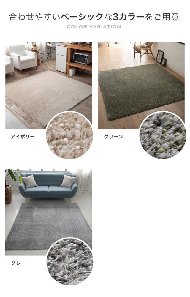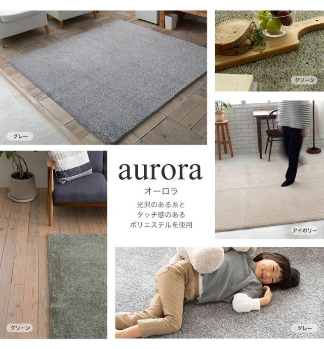 ラグ オーロラ 185×240cm カーペット 国産 日本製 ラグマット リビング シンプル 無地 防ダニ 防音 消臭 床暖対応 ホットカーペット対応 遊び毛防止 アイボリー グリーン グレー 新生活(代引不可)【送料無料】