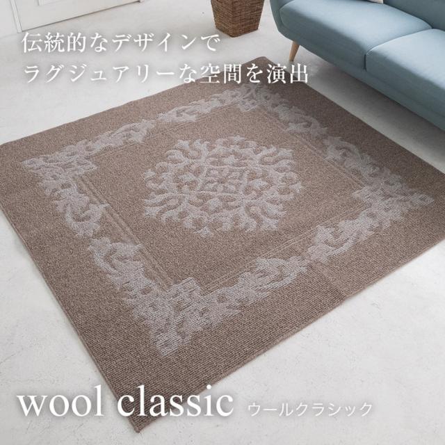 ラグ ウールクラシック 185×185cm カーペット 国産 日本製 ウール ラグマット リビング シンプル エレガント 防ダニ 防音 床暖対応 ホットカーペット対応 遊び毛防止 ブラウン モカ 新生活(代引不可)【送料無料】