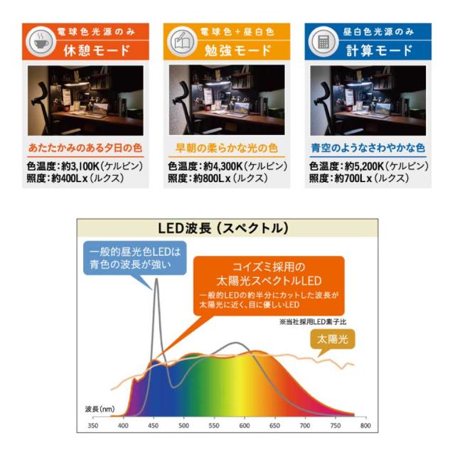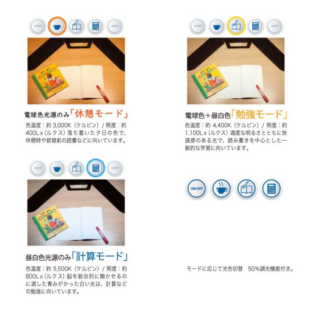 ・ モードに応じて光色切り替え可能。(50%調光機能付き)