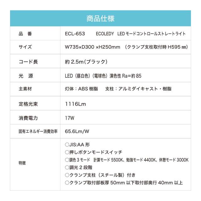 【正規代理店】コイズミファニテック デスクライト LEDライト クランプ LEDモード コントロール ストレートライト ホワイト ECL-653