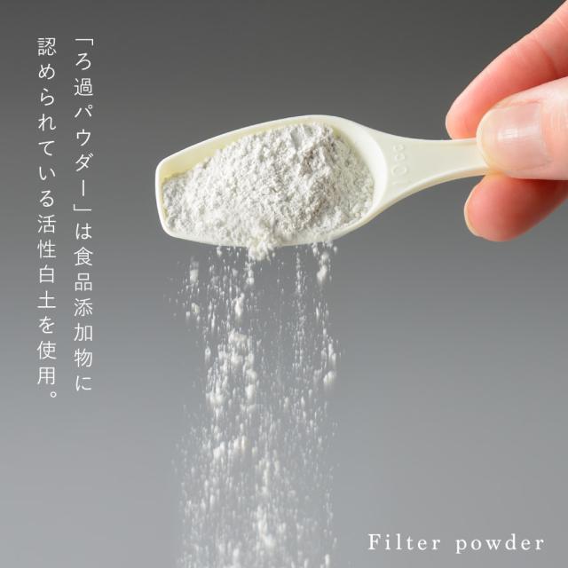 ■材質:ろ過パウダー/活性白土、フィルター/ろ紙(酸素漂白)、計量スプーン/バイオPE25%+PP75%