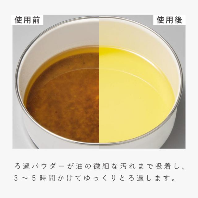 ろ過パウダーとフィルターは使用ごとに交換する必要がありますが、油の価格と比べるとリーズナブルな商品です。