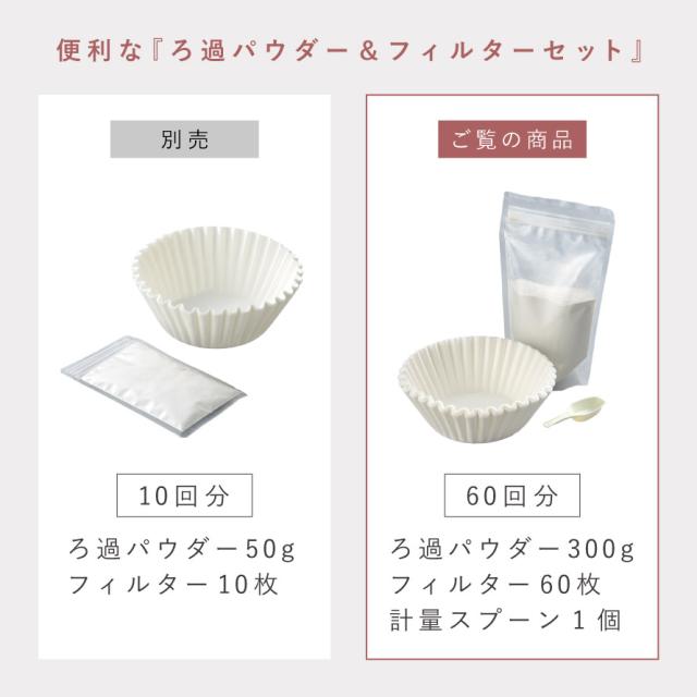 ■セット内容:ろ過パウダー300g(約60回分)、フィルター60枚、計量スプーン1個
