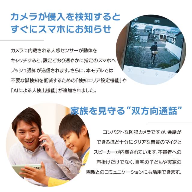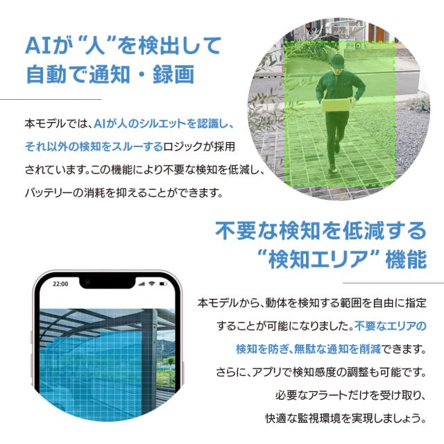 動体検知 :人感センサー(検知範囲:最長約6m) / AIスマート検知