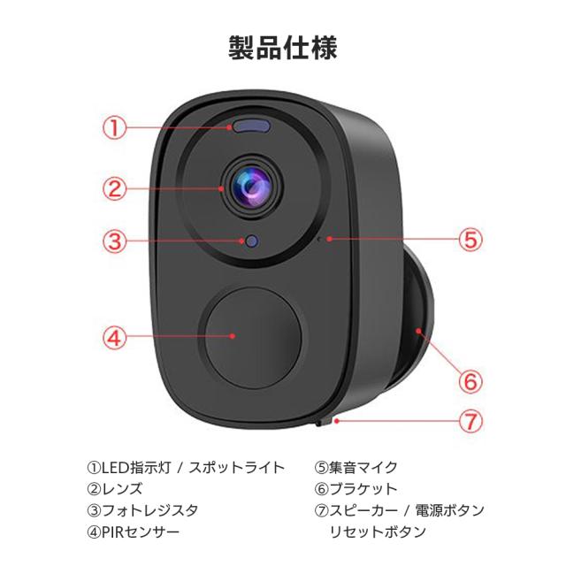 暗視 :IR LED×6個 850nm(距離約5-10m)/ LEDスポットライト×1個