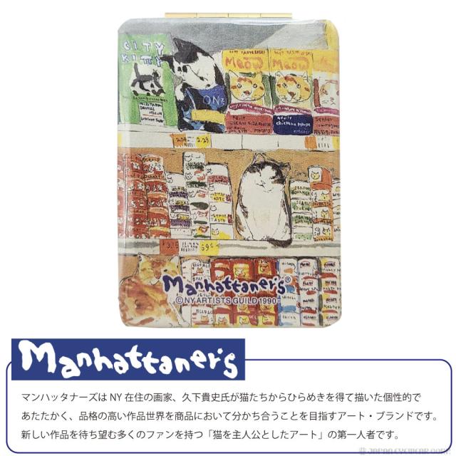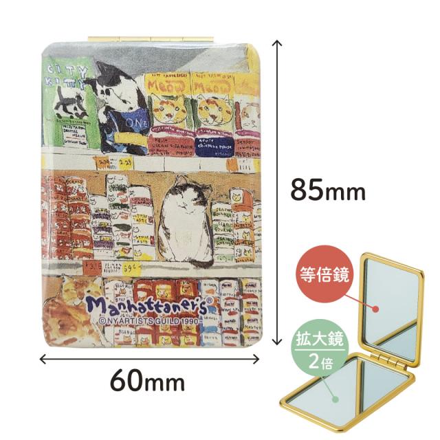 マンハッタナーズ コンパクトミラー ハンドミラー ネコ 拡大鏡付き MAN-1 グルメ猫 Manhattaner’s ミラー ダブル 等倍鏡 手鏡 ねこ 猫 かわいい フェデリコ ミケランジェラ シゲオ キャット ギフト プレゼント 小物 雑貨 化粧直し