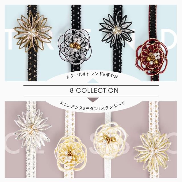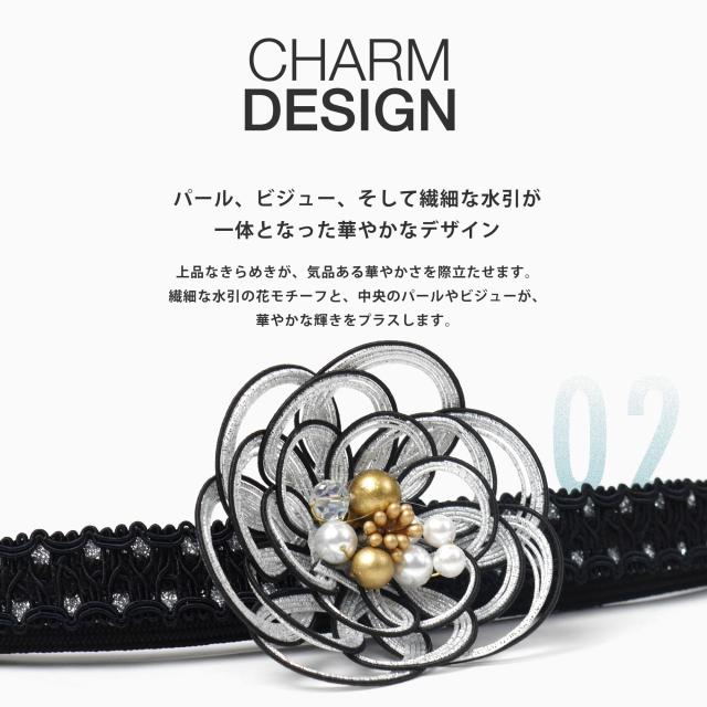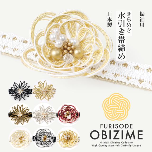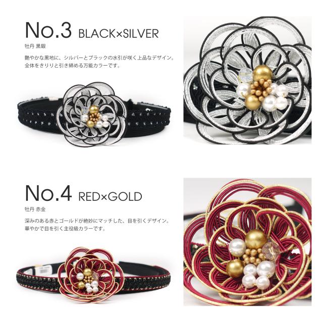 約6cmのチャームがインパクト大 振袖 帯締め 正絹 帯〆 選べる8種類 金 白 黒 ゴールド パール ワインレッド エレガント 刺繍 日本製 成人式 前撮り 平組