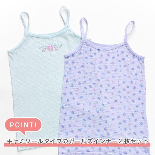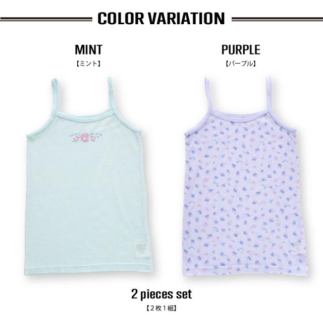 2枚セットのキャミソールタイプのガールズインナーシャツです。