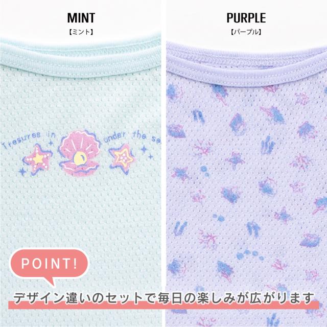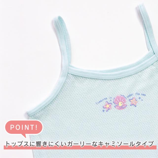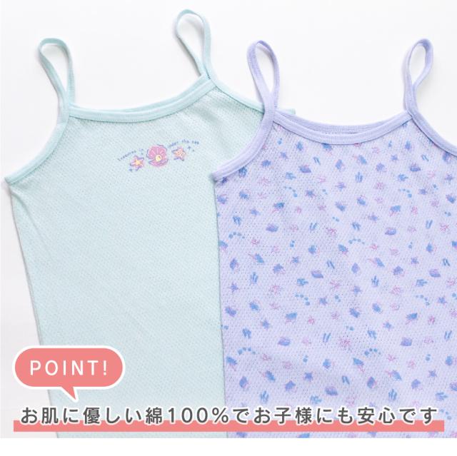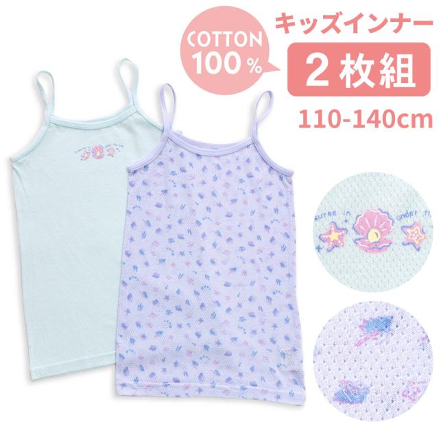ガールズ インナー 綿100% キャミソールプ ノースリーブ 2枚セット メッシュ編み マリン柄 プリント 肌着 ランニング シャツ 110 120 130 140