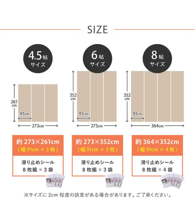 | 4.5畳/273×261cm | 6畳/273×352cm | 8畳/364×352cm |