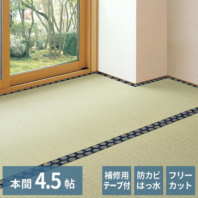 フリーカット裏付き い草カーペット 286×286cm みすず 本間4.5畳 補修テープ付き 防カビ はっ水 フリーカット カットOK 双目織 畳カバー マット 敷き詰め カーペット(代引不可)【送料無料】
