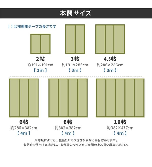 | 2畳/191×191cm | 3畳/191×286cm | 4.5畳/286×286cm |