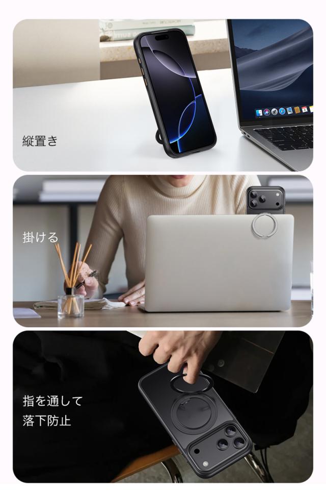 アイホン ケース おしゃれ 耐衝撃 オシャレ スタンド リング 角度調整 カバー MagSafe スマホケース カメラ保護 衝撃吸収 軽量 薄型