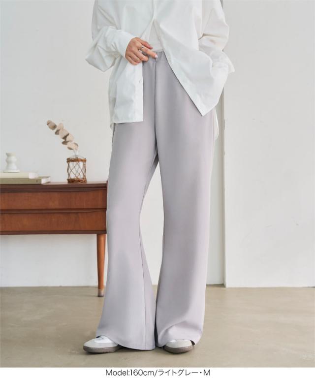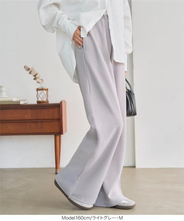 送料無料 [ 選べる5サイズ ] 錯覚美脚ストレッチワイドパンツ M4251 一部予約 レディース 20代 30代 40代 ワイドパンツ カーブパンツ フレアパンツ 美脚 低身長 高身長 着痩せ Lサイズ ゴム ストレッチ リラックス プチ トール 体型カバー 黒