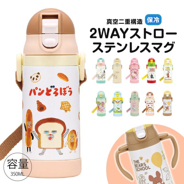 \今だけ10%OFF/ 水筒 キッズ ストローマグ 2WAY 350ml 保冷 ベビーマグ ベビー 男の子 女の子 水筒 赤ちゃん トレーニングマグ 子供 ワンプッシュ 両手ハンドル ベルト かわいい ギフト キャラクター STWM3N