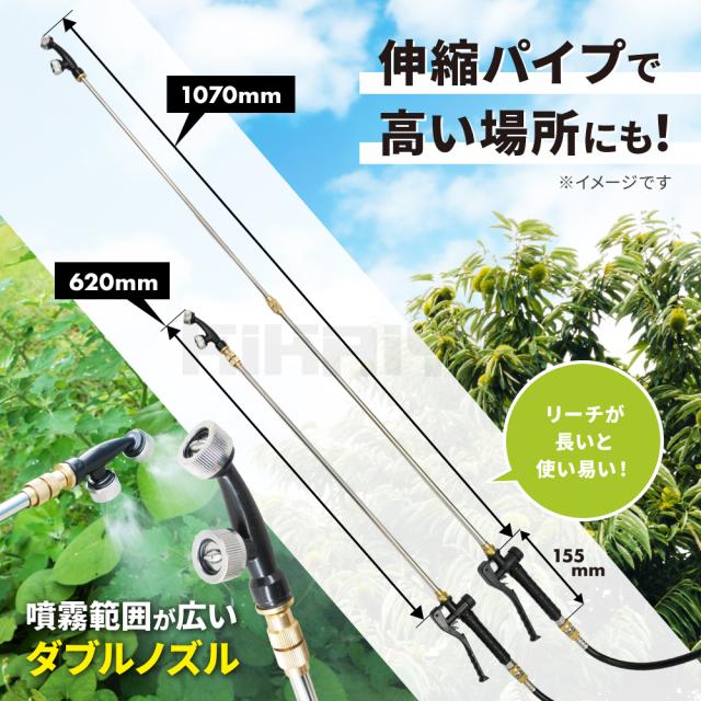 重いタンクを背負わずラクラク!薬剤散布や水やりに便利 ●18Vバッテリー対応の充電式噴霧器(本体のみ)+ホース付台車のセットです ●20Lの大容量タンクと20Mホース付の専用台車で、広範囲に散布可能 ●大型タイヤで不整地でも楽に移動できます ●ダブルノズルで噴霧範囲も広く、延長パイプで高い場所にも届きます ●小型ダイヤフラムポンプ採用で液漏れしにくくなっています ●つまみで噴出圧力を調整でき、最大噴出にすると毎分約2Lで噴霧できます ●肩ひも付きで背負うこともでき、台車が入りにくい場所でも安心 ●広い農園や庭の手入れに最適で、労力も少なく効率的な作業ができます 【 ご注意 】 ※バッテリーは付属しません ※別途マキタ式18Vバッテリーをご用意ください ※動作点検により、多少の水が残っていますのでご了承ください 品番:FM-20D |