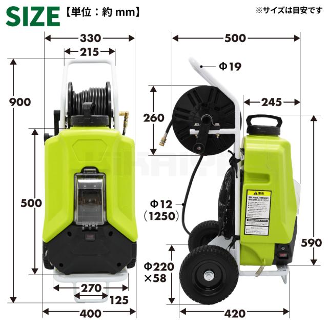 電動噴霧器 台車 リール 20Mホース 20L マキタ式 18V バッテリー別売り 動噴 充電式 コードレス 除草剤 農薬 防虫剤 散布 KIKAIYA