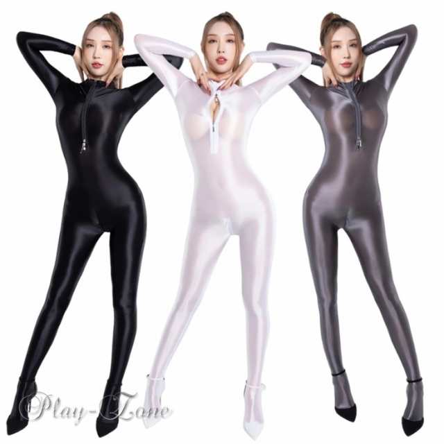 【】全身タイツ コスプレ セクシー コスチューム 穴あき 全身タイツ セクシー ボディスーツ 長袖 キャットスーツ コスプレ衣装 仮装 コスチューム キャットスーツ 2頭ファスナー ジャンプスーツ 光沢 全3色 C113