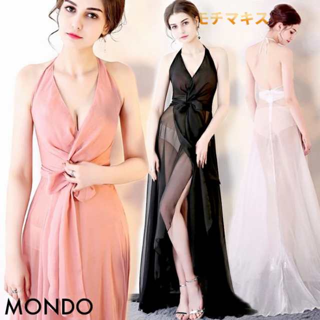 アウトレット シースルー ワンピース マキシドレス ロング セクシー 大人 女性 レディース 透け透け エロ ナイトドレス ノースリーブ 解ける シフォン マキシ ワンピ スリット スカート 背中 パーティー イベント セクシ-ランジェリー 黒 ブラック 白