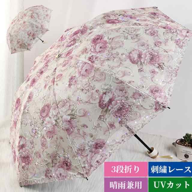 傘 日傘 折りたたみ 完全遮光 晴雨兼用 折りたたみ傘 8本骨 3段折り 携帯便利 軽量 可愛い 傘 男女兼用 梅雨対策 超撥水 UVカット 紫外線対策 撥水加工 可愛い 刺繍 レース 可愛い フェミニン プリンセス 大きめ 手動開閉