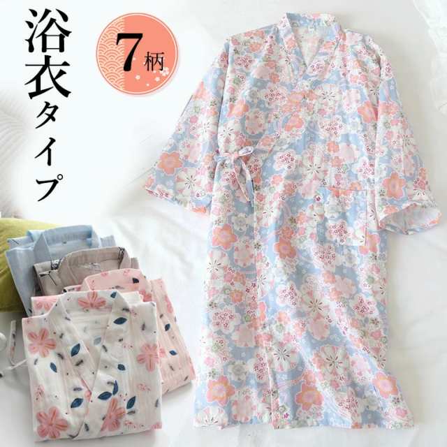 可愛い7柄 浴衣タイプで着やすい パジャマ ガーゼ 寝巻き 甚平 ルームウェア 部屋着 前開き ガウン 夏 かわいい バスローブ ルームワンピース ネグリジェ 浴衣 和風 花柄 入院 介護 涼しい 夏 旅行 リラックス