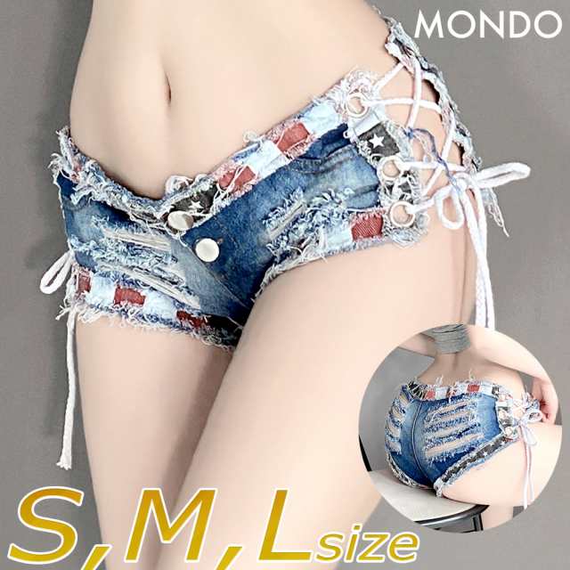 【商品名】デニム ショートパンツ 大きいサイズ ダメージ ジーンズ レディース ローライズ 編み上げ セクシー ショート パンツ エロ ボトムズ ズボン ジーパン セクシーランジェリ 玩具 大人 女性 インディゴ ブルー 青 大人のおもちゃ 韓国ファッション おしゃれ 加工 S M Lサイズ
