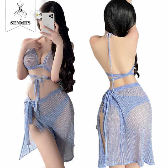 コスプレセクシー ビキニ ビーチ エッチ エロ 下着 過激 貧乳 エロ服 かわいい スケスケ アダルト下着 透け透 ランジェリー ベビードール キャミソール コスチューム ドレス レディース ワンサイズ ブルー
