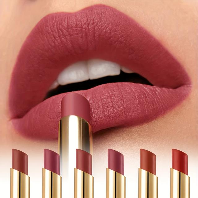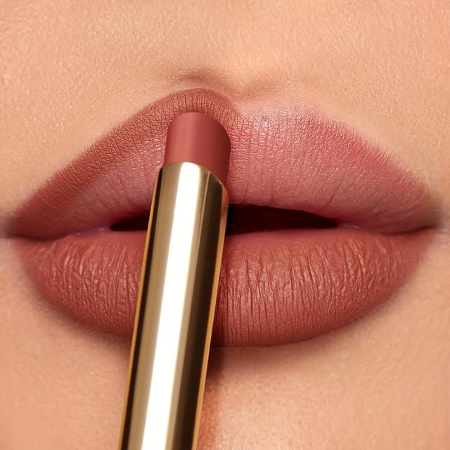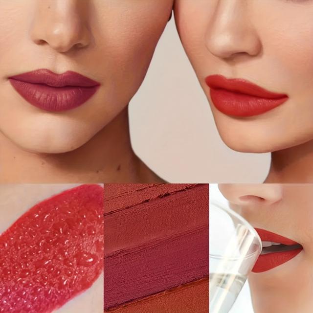 スリムチューブ マットリップスティック ローズ豆ペーストヌードレッド - 防水、変色しない、にじみにくい長持ちリップグレーズ、全肌質に最適 - バレンタインデーの完璧なギフト