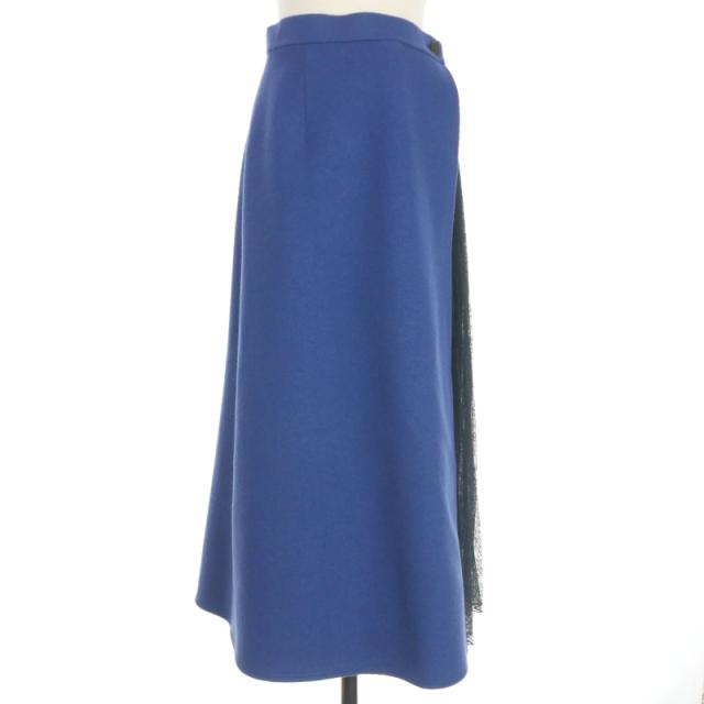 【中古】デザインワークス DESIGNWORKS プリーツレース ドッキングラップスカート 38 ブルー/ネイビー 青 紺