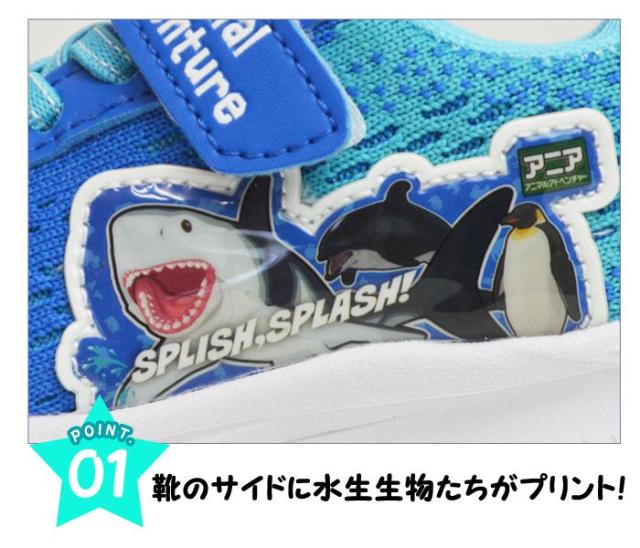 【取り寄せ】ANIA アニア キッズスニーカー 子供 スニーカー アニマルアドベンチャー キッズ シューズ 軽量 運動靴 子供用 ベルクロ マジックテープ 屈曲 キッズスニーカー サメ ペンギン シャチ 靴 子供靴/2026新作 秋冬 トレンド