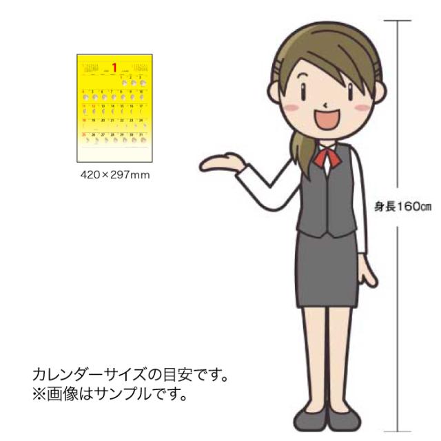 | 商品特徴 | ・黄色と月の満ち欠けでバイオリズムの参考に ・前後月、六曜旧暦入り ・月の満ち欠けのイラスト入り月表 ・カレンダーを綴る部分を金具ではなく、厚紙を使用しホットメルトという接着剤を使用した、環境に優しいエコカレンダーになります。 ・廃棄する時も分別の必要がない、手間もかからず環境にも配慮した商品です。 |