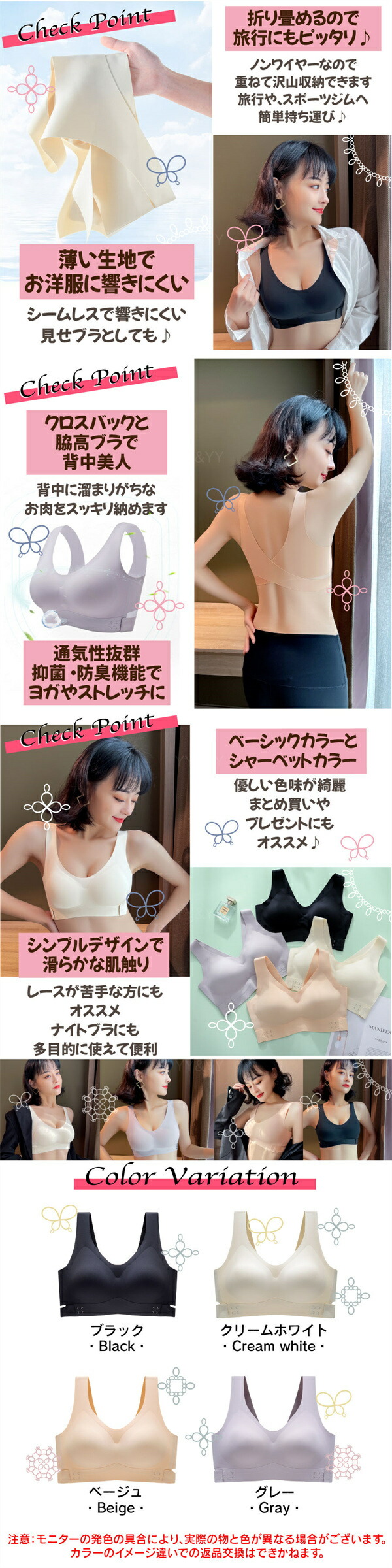 ★ナイトブラ、見せブラ、スポーツブラやヨガブラとして活用できる万能ブラです。