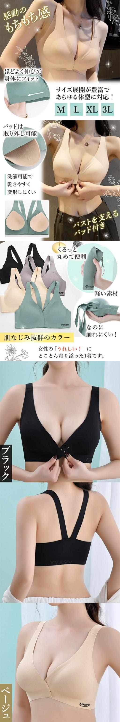 | 商品説明 | フロントホックタイプのブラジャー。楽ちんブラ。ナイトブラ。シームレスなデザインで後ろ姿もスマート。余計な突起もないから洋服に響かない。通気性・伸縮性抜群で締め付けない。運動やヨガにもオススメ。パッド付きでしっかりバストをホールド。バストを持ち上げて美しさをキープ。軽くて優しい手触り。肩こりになりにくい。洗濯OK。大きいサイズで安心。丸めて持ち運びできるから旅行でもかさばらない。形が崩れにくい丈夫なパッド。 |