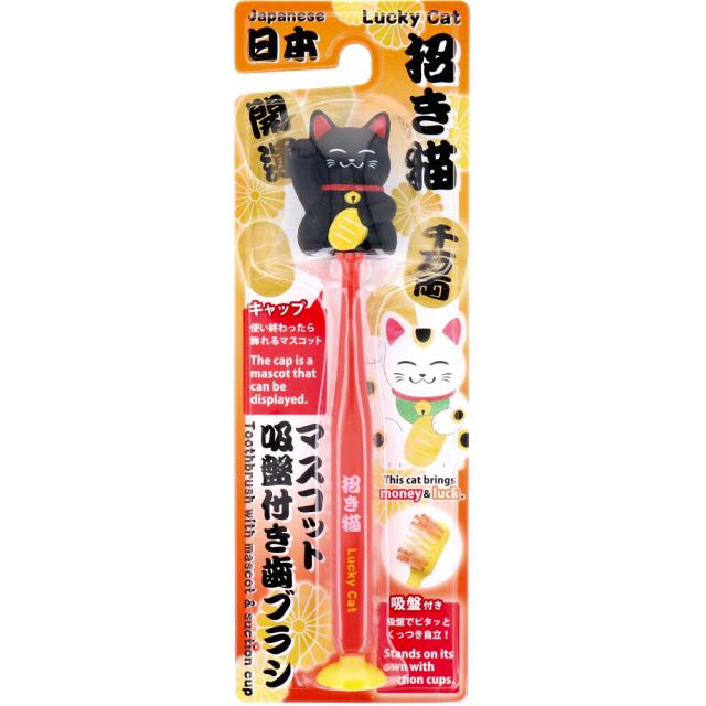 マスコット吸盤付き歯ブラシ 招き猫 ブラック 1本入