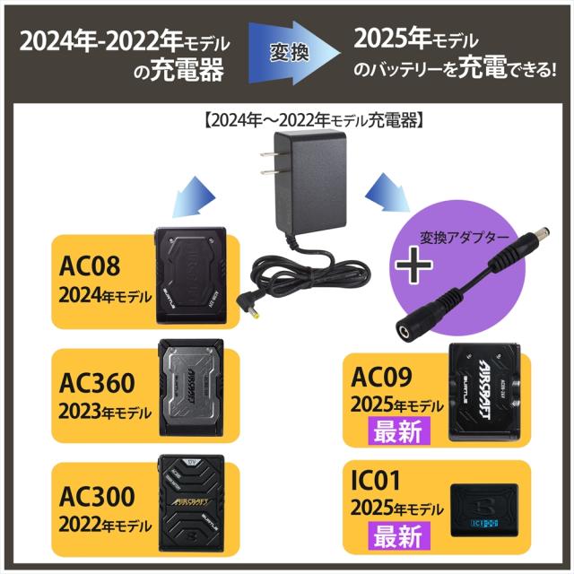 | 対応バッテリー型番 | BURTLE AIRCRAFT 2024年モデル 22V 【 AC08 】 ※対応型番以外のバッテリーの充電には使用できません。 ※お手持ちのバッテリーの型番をご確認いただきご注文をお願いいたします。 |